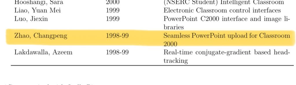 In 1998-99, under supervision at McGill University, CZ contributed to the development of the Classroom 2000 initiative as confirmed by Jeremy R. Cooperstock, his professor.